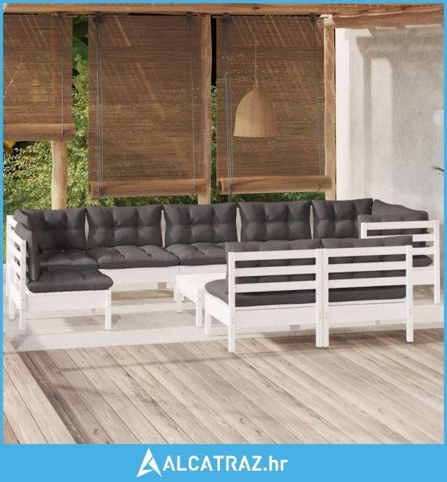 10-dijelna vrtna garnitura od borovine s jastucima bijela - NOVO