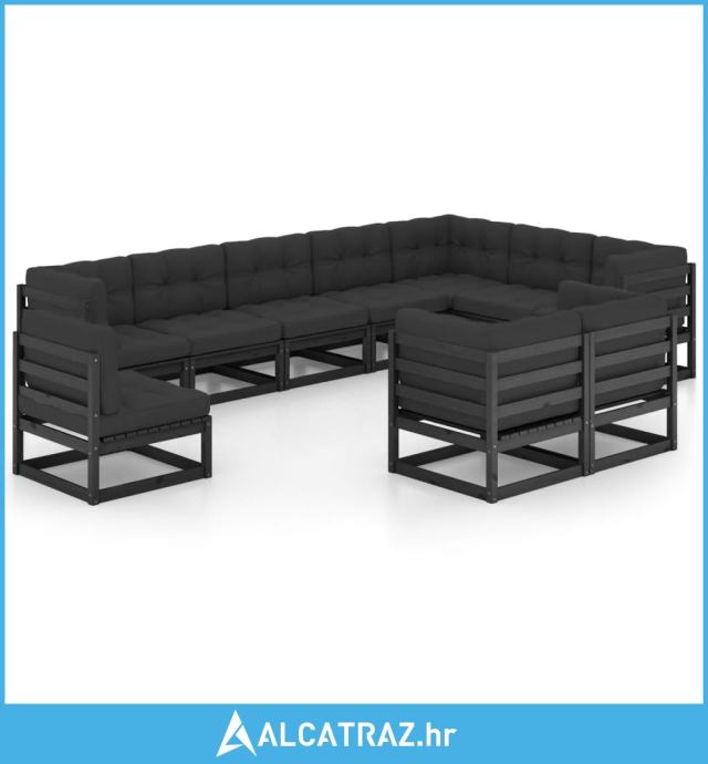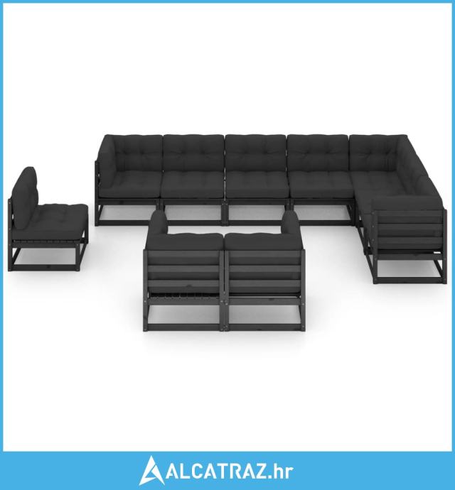 10-dijelna vrtna garnitura s jastucima crna od masivne borovine - NOVO