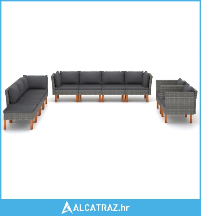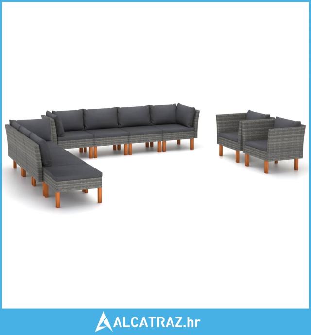10-dijelna vrtna garnitura poliratan i drvo eukaliptusa siva - NOVO