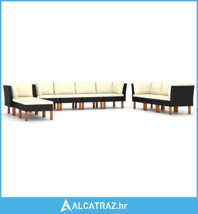 10-dijelna vrtna garnitura od poliratana s jastucima crna - NOVO