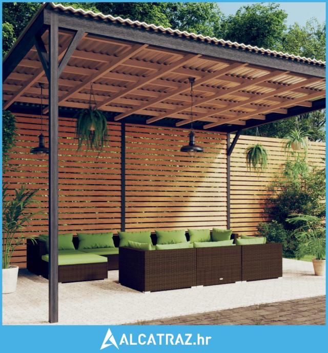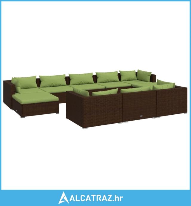 10-dijelna vrtna garnitura od poliratana s jastucima smeđa - NOVO