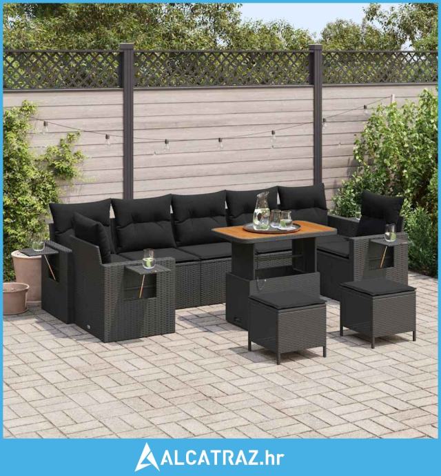 10-dijelni set za vrt s jastučićima crni poli ratan akacija - NOVO