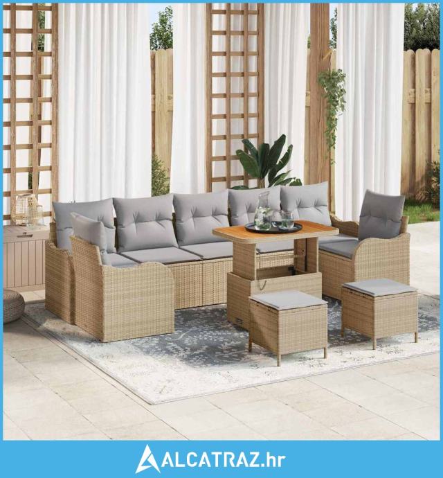 10-dijelni set vrtnih sofa s jastučićima bež poli ratan akacija - NOVO