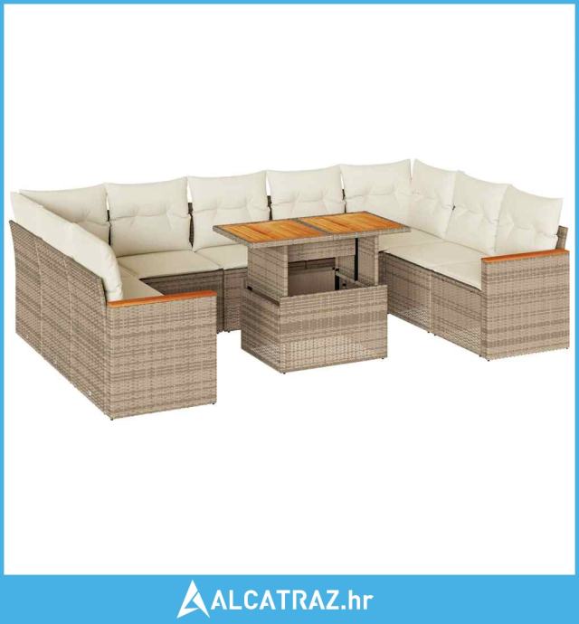 10-dijelni set vrtnih sofa s jastucima bež od poliratana bagrem - NOVO