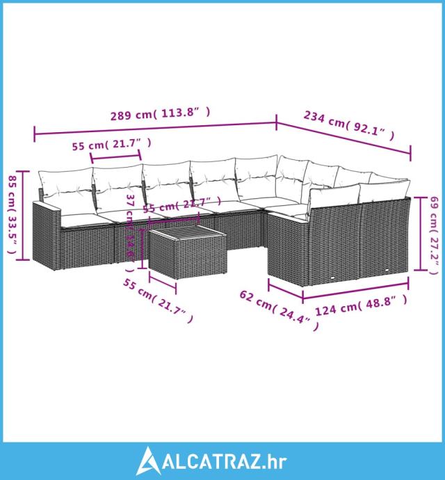 - 9 x jastuk za sjedalo s odvojivom i perivom navlakom
