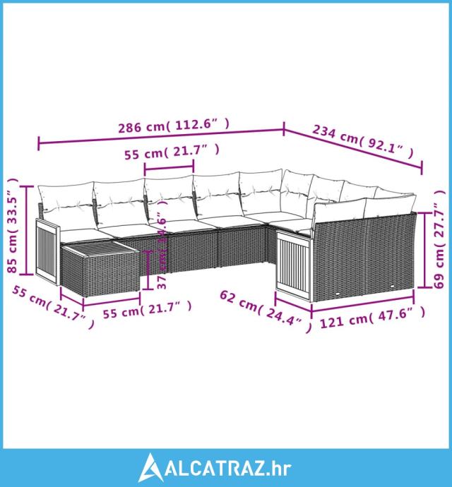 - 9 x jastuk za sjedalo s odvojivom i perivom navlakom