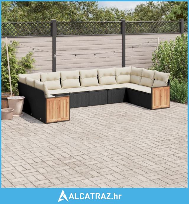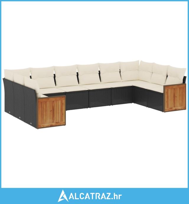 10-dijelni set vrtnih sofa s jastucima crni od poliratana - NOVO