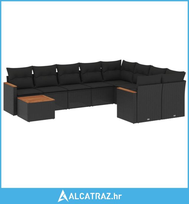 10-dijelni set vrtnih sofa s jastucima crni od poliratana - NOVO