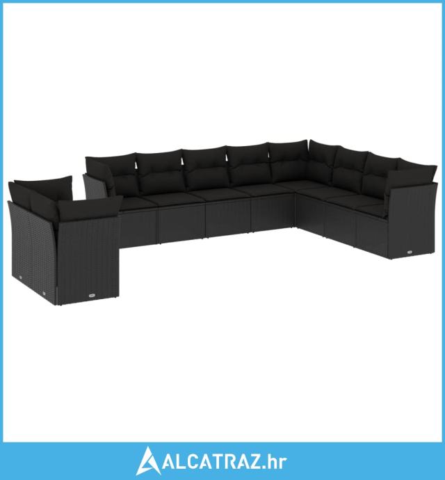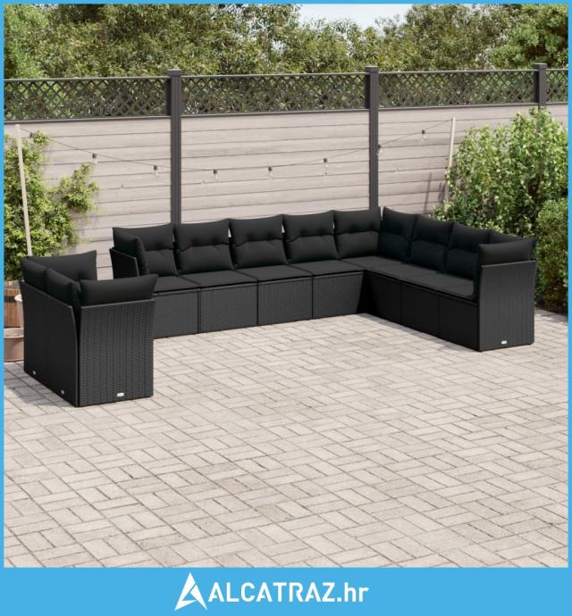 10-dijelni set vrtnih sofa s jastucima crni od poliratana - NOVO