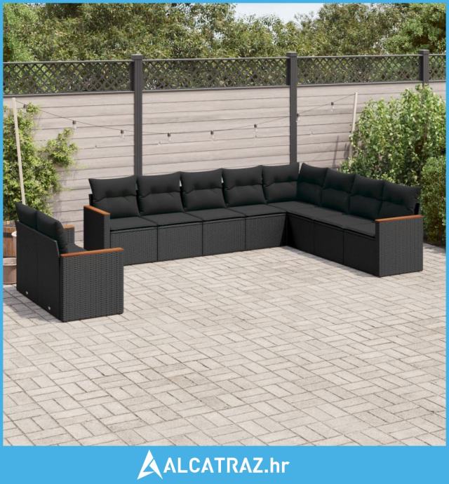 10-dijelni set vrtnih sofa s jastucima crni od poliratana - NOVO