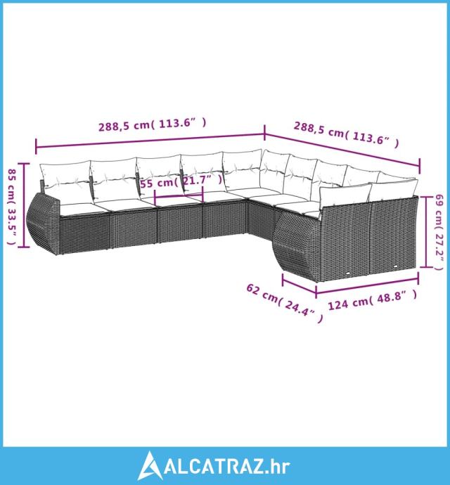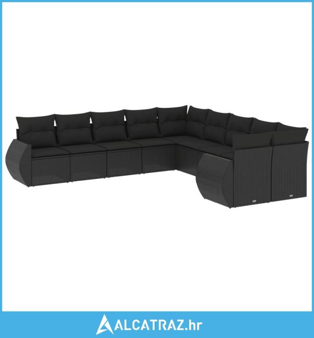 10-dijelni set vrtnih sofa s jastucima crni od poliratana - NOVO