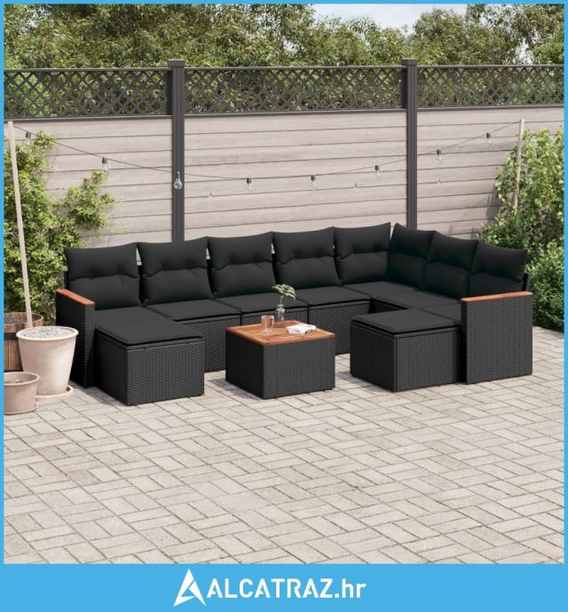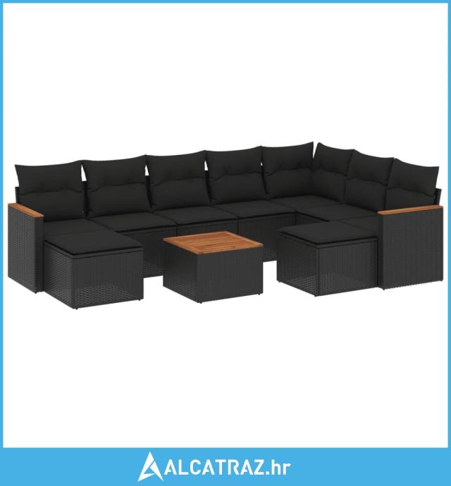 10-dijelni set vrtnih sofa s jastucima crni od poliratana - NOVO