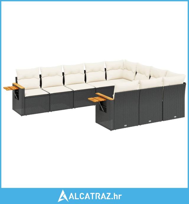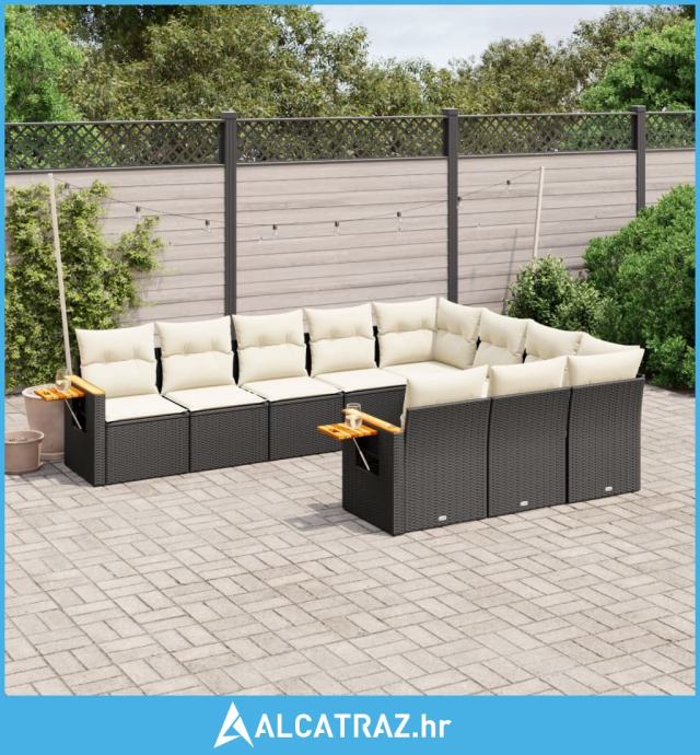 10-dijelni set vrtnih sofa s jastucima crni od poliratana - NOVO