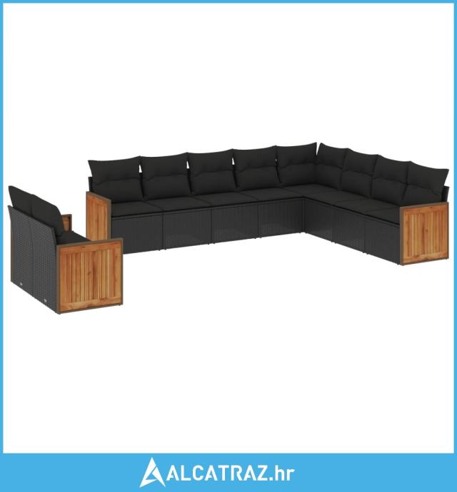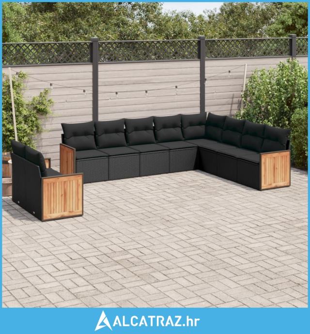 10-dijelni set vrtnih sofa s jastucima crni od poliratana - NOVO