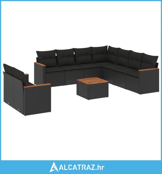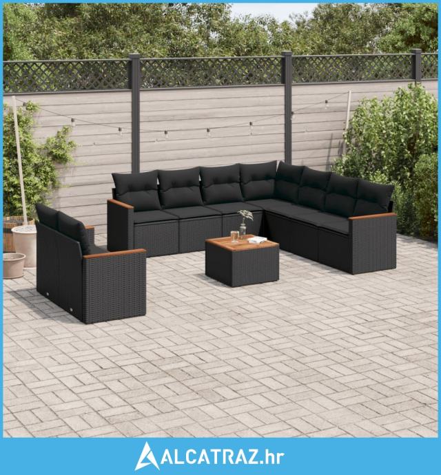 10-dijelni set vrtnih sofa s jastucima crni od poliratana - NOVO