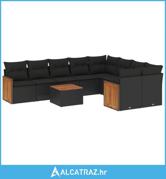 10-dijelni set vrtnih sofa s jastucima crni od poliratana - NOVO