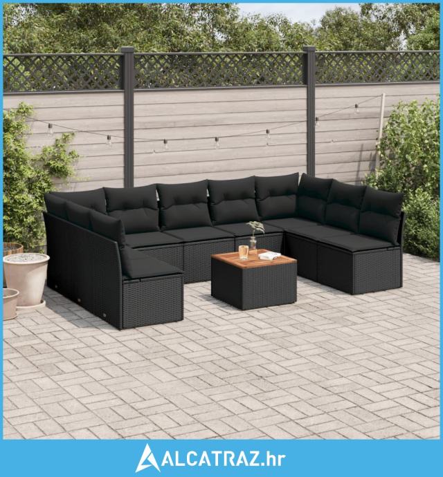 10-dijelni set vrtnih sofa s jastucima crni od poliratana - NOVO