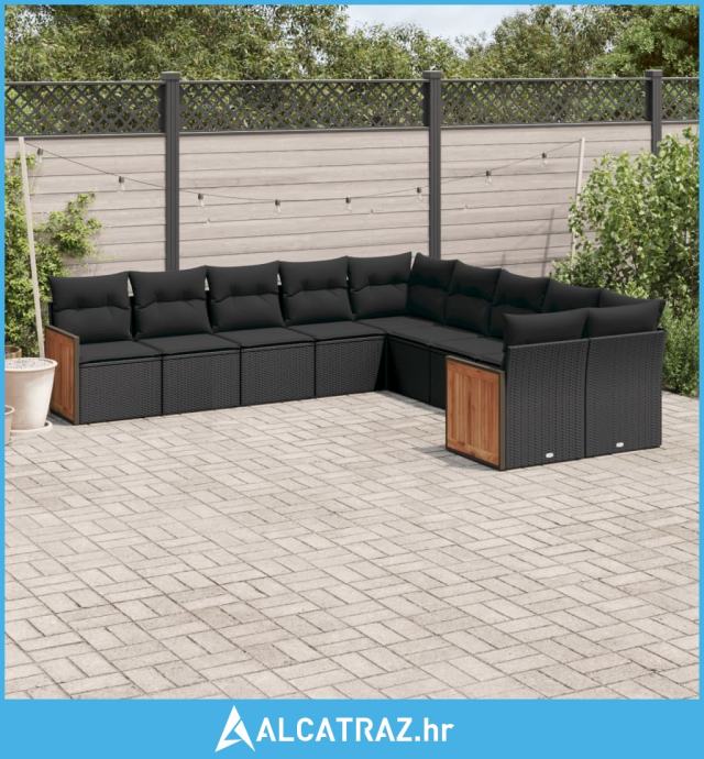 10-dijelni set vrtnih sofa s jastucima crni od poliratana - NOVO