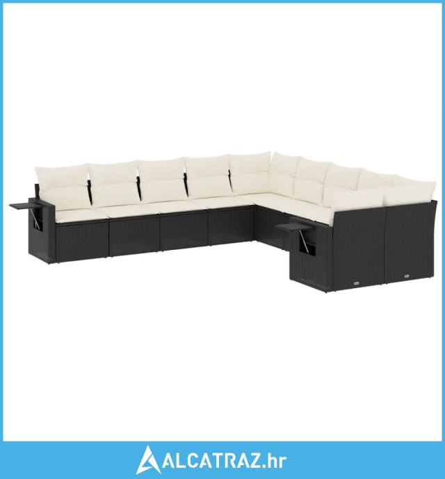 10-dijelni set vrtnih sofa s jastucima crni od poliratana - NOVO