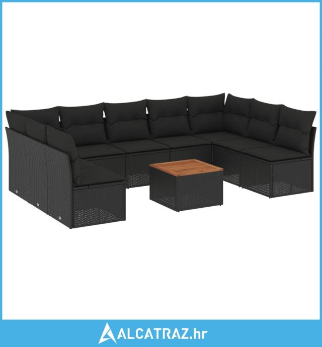 10-dijelni set vrtnih sofa s jastucima crni od poliratana - NOVO