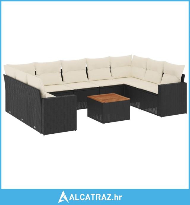 10-dijelni set vrtnih sofa s jastucima crni od poliratana - NOVO