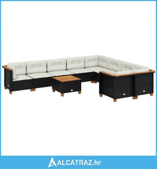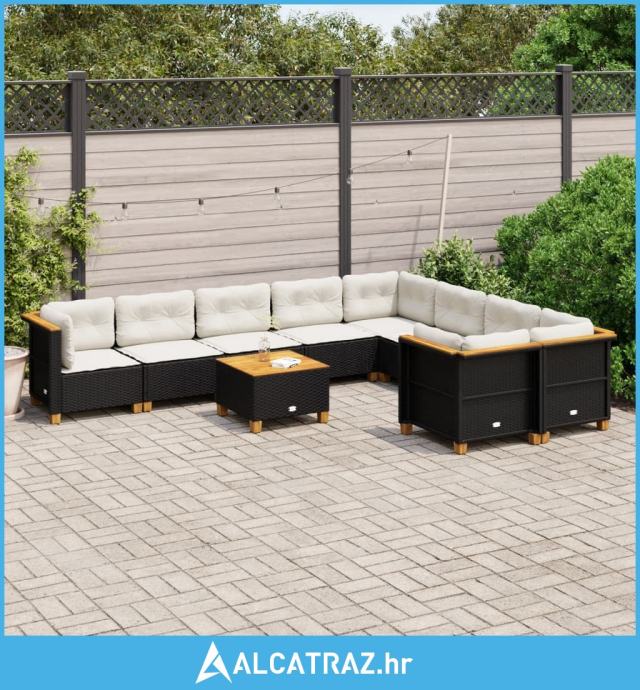 10-dijelni set vrtnih sofa s jastucima crni od poliratana - NOVO