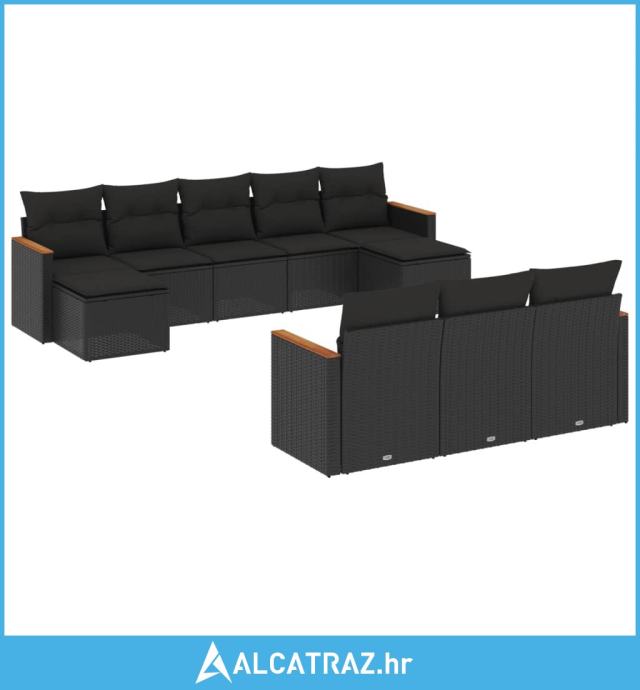 10-dijelni set vrtnih sofa s jastucima crni od poliratana - NOVO