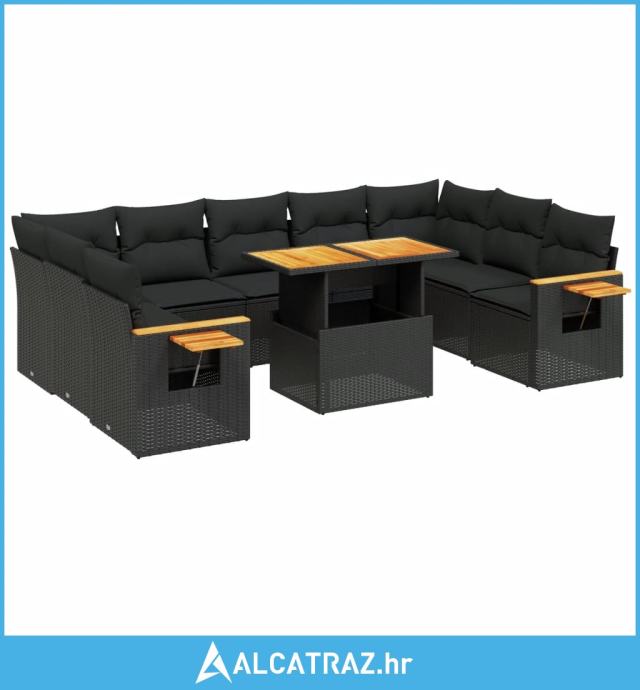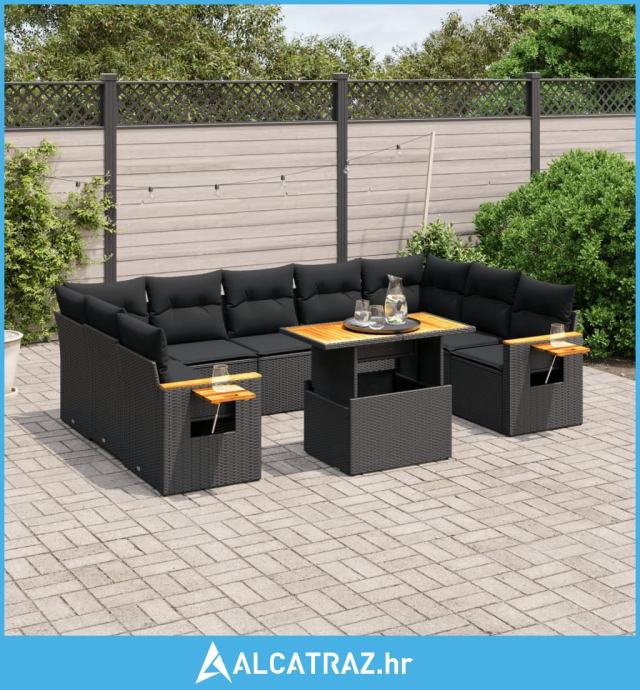 10-dijelni set vrtnih sofa s jastucima crni od poliratana - NOVO