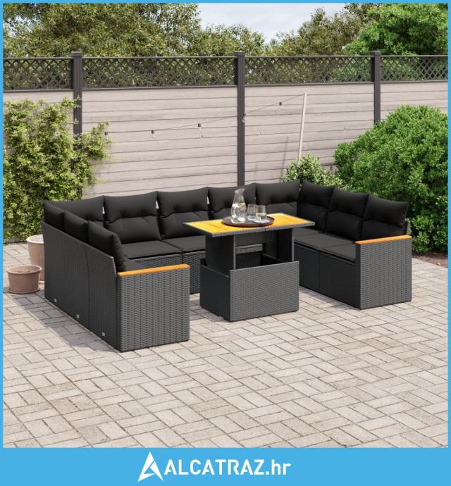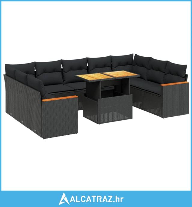10-dijelni set vrtnih sofa s jastucima crni od poliratana - NOVO