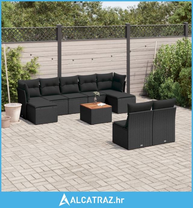 10-dijelni set vrtnih sofa s jastucima crni od poliratana - NOVO