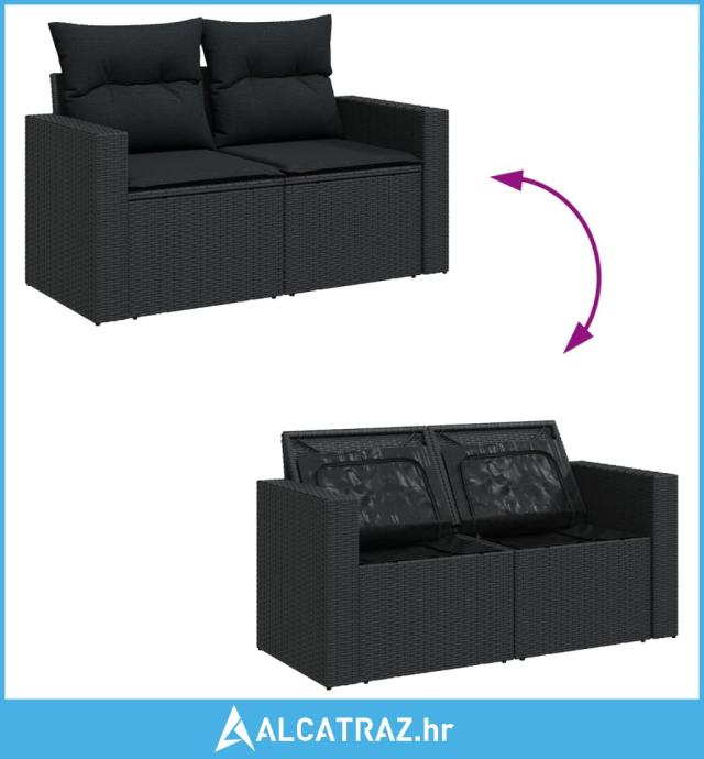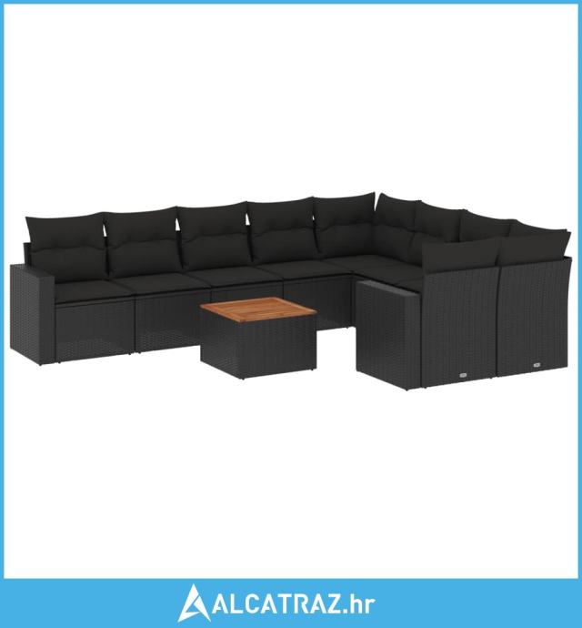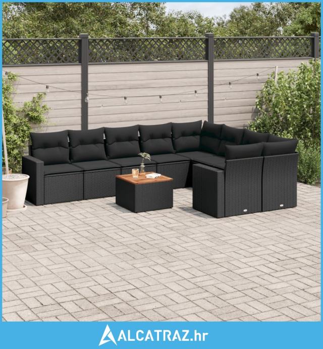 10-dijelni set vrtnih sofa s jastucima crni od poliratana - NOVO