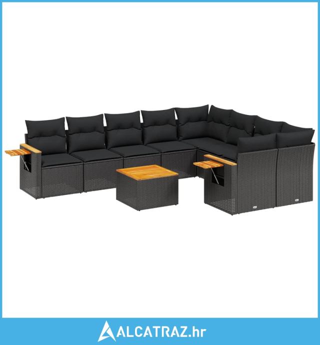 10-dijelni set vrtnih sofa s jastucima crni od poliratana - NOVO