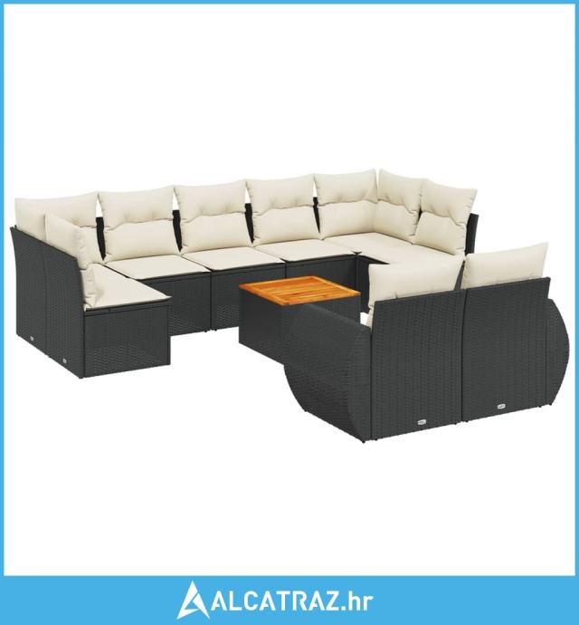 10-dijelni set vrtnih sofa s jastucima crni od poliratana - NOVO