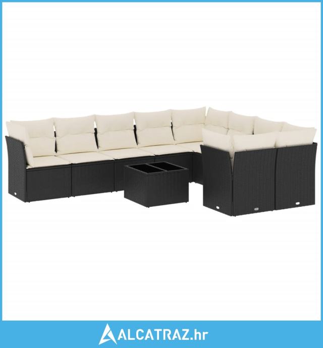 10-dijelni set vrtnih sofa s jastucima crni od poliratana - NOVO