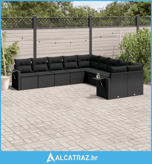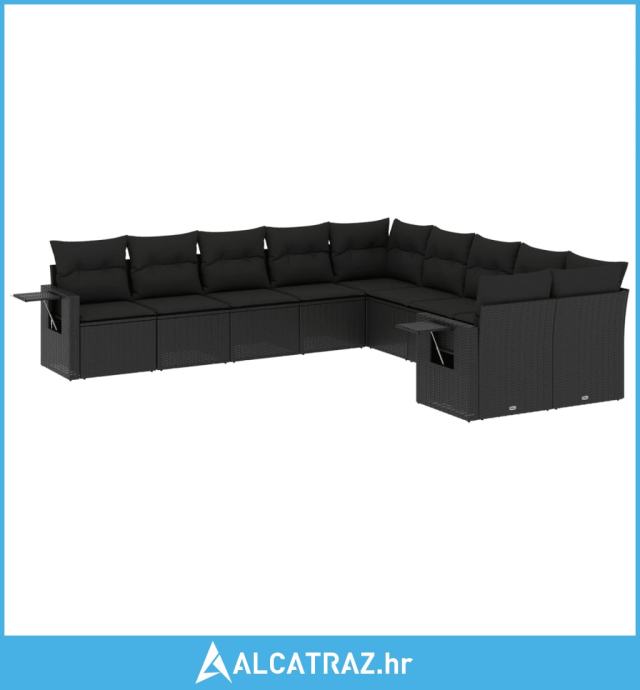 10-dijelni set vrtnih sofa s jastucima crni od poliratana - NOVO