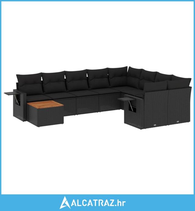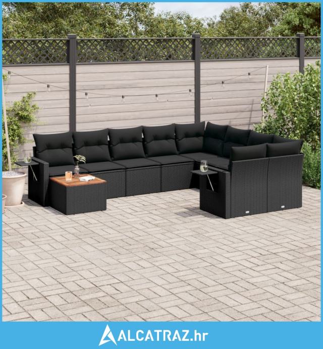 10-dijelni set vrtnih sofa s jastucima crni od poliratana - NOVO