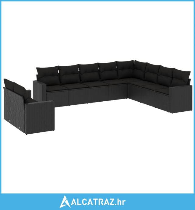 10-dijelni set vrtnih sofa s jastucima crni od poliratana - NOVO