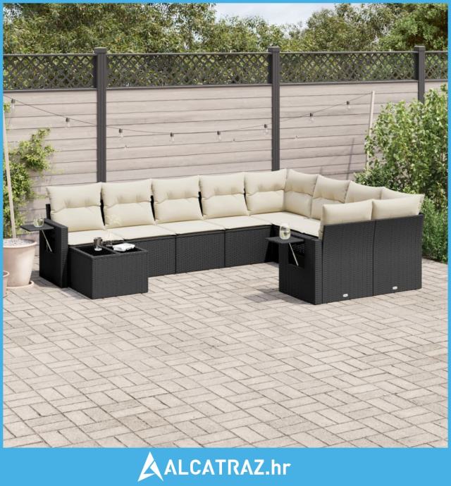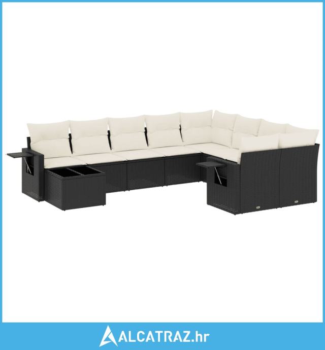 10-dijelni set vrtnih sofa s jastucima crni od poliratana - NOVO