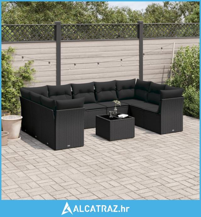 10-dijelni set vrtnih sofa s jastucima crni od poliratana - NOVO
