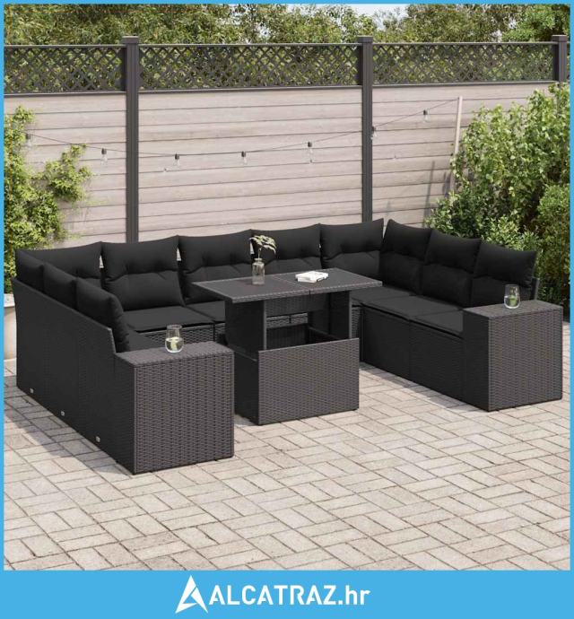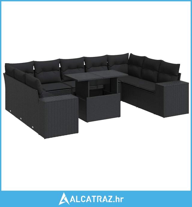 10-dijelni set vrtnih sofa s jastucima crni od poliratana - NOVO