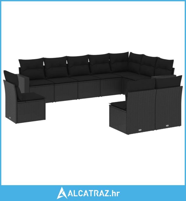 10-dijelni set vrtnih sofa s jastucima crni od poliratana - NOVO