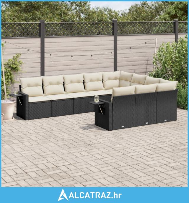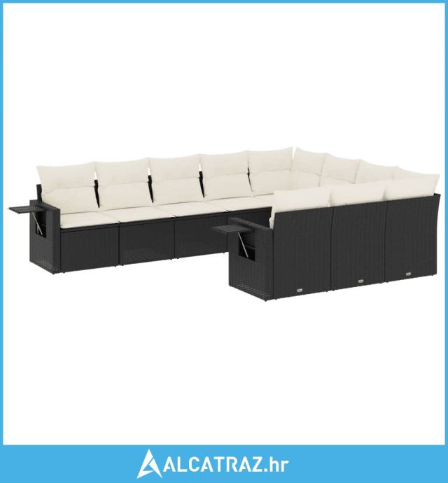 10-dijelni set vrtnih sofa s jastucima crni od poliratana - NOVO