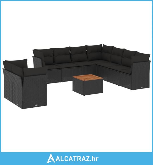 10-dijelni set vrtnih sofa s jastucima crni od poliratana - NOVO