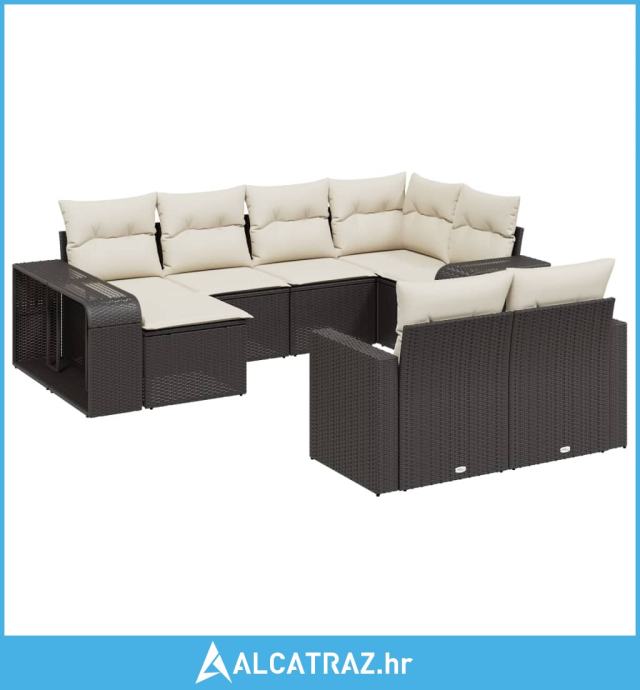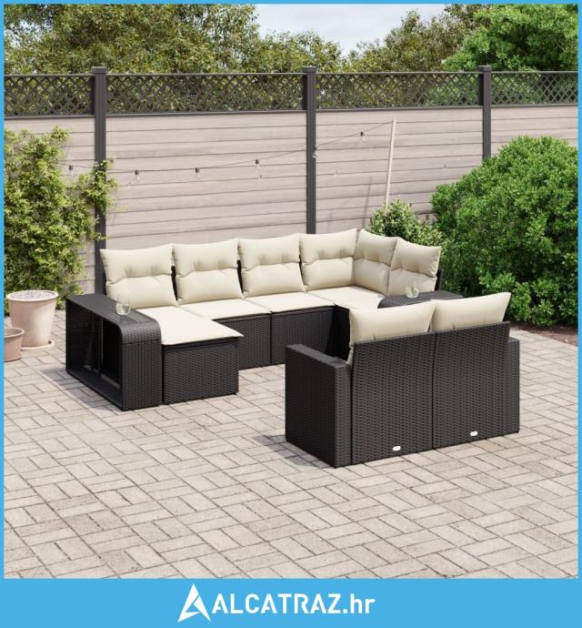 10-dijelni set vrtnih sofa s jastucima crni od poliratana - NOVO