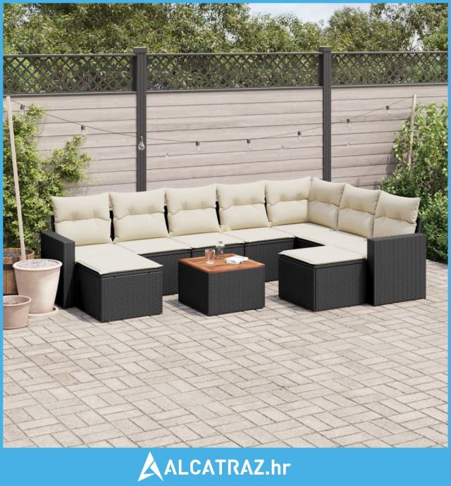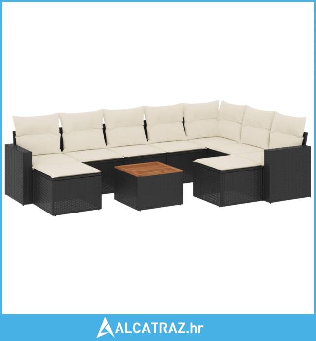 10-dijelni set vrtnih sofa s jastucima crni od poliratana - NOVO