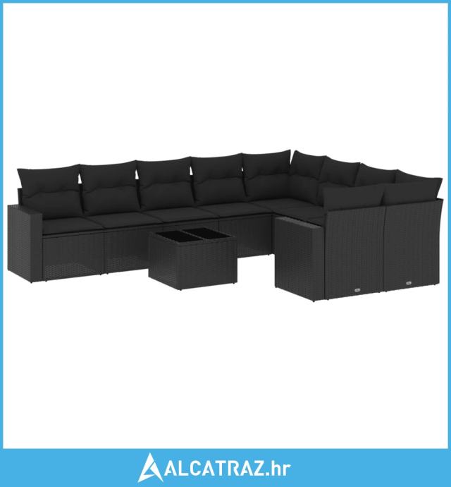 10-dijelni set vrtnih sofa s jastucima crni od poliratana - NOVO