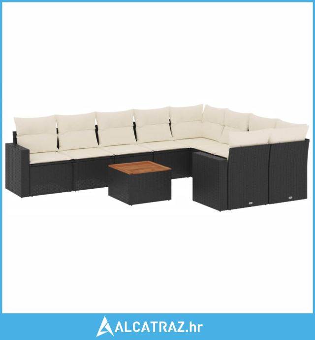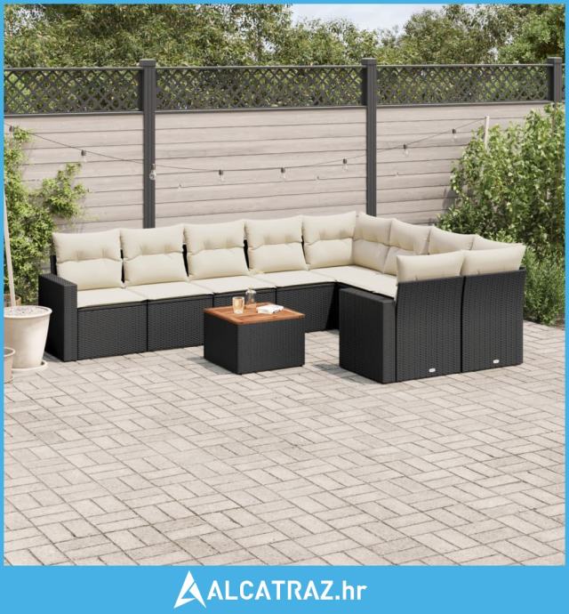 10-dijelni set vrtnih sofa s jastucima crni od poliratana - NOVO