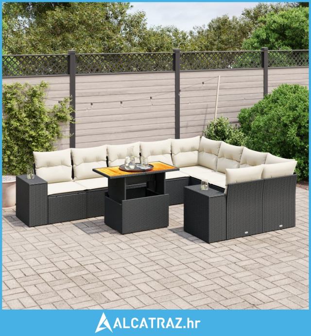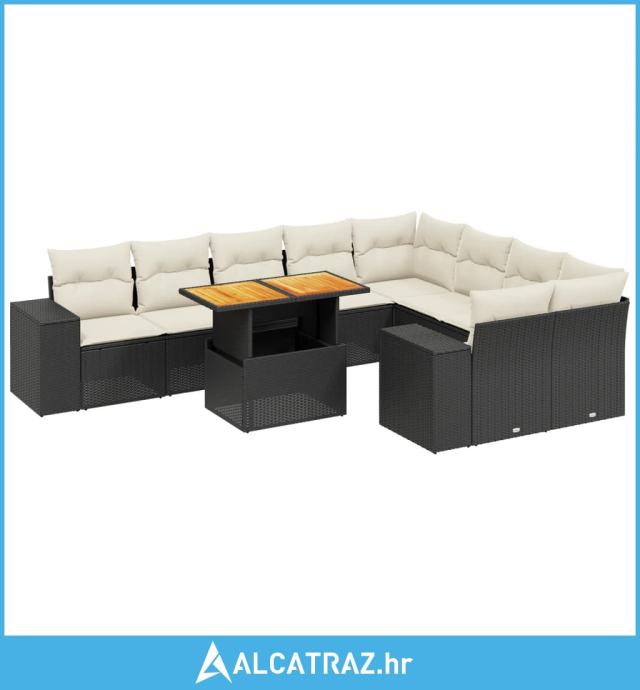 10-dijelni set vrtnih sofa s jastucima crni od poliratana - NOVO