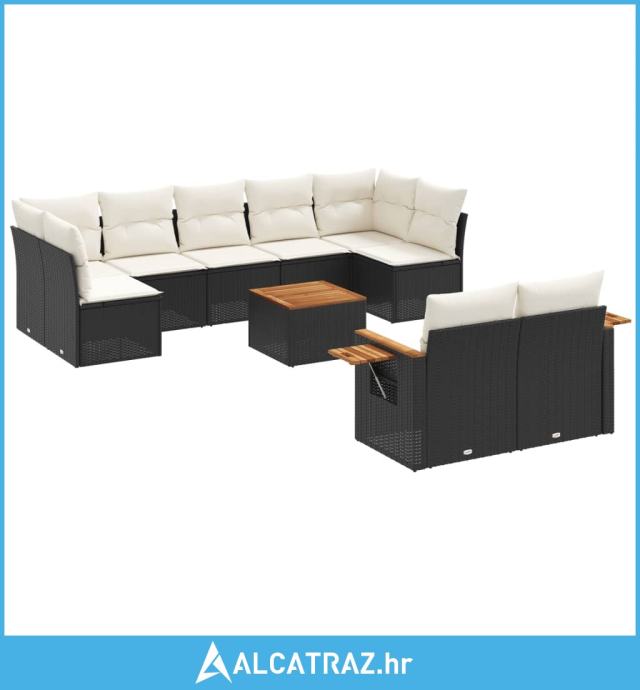 10-dijelni set vrtnih sofa s jastucima crni od poliratana - NOVO