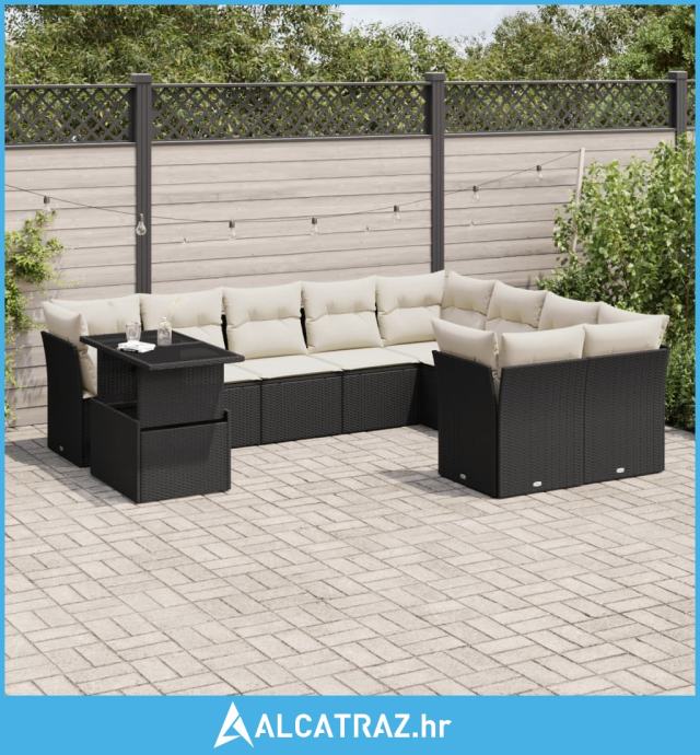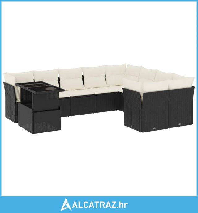 10-dijelni set vrtnih sofa s jastucima crni od poliratana - NOVO